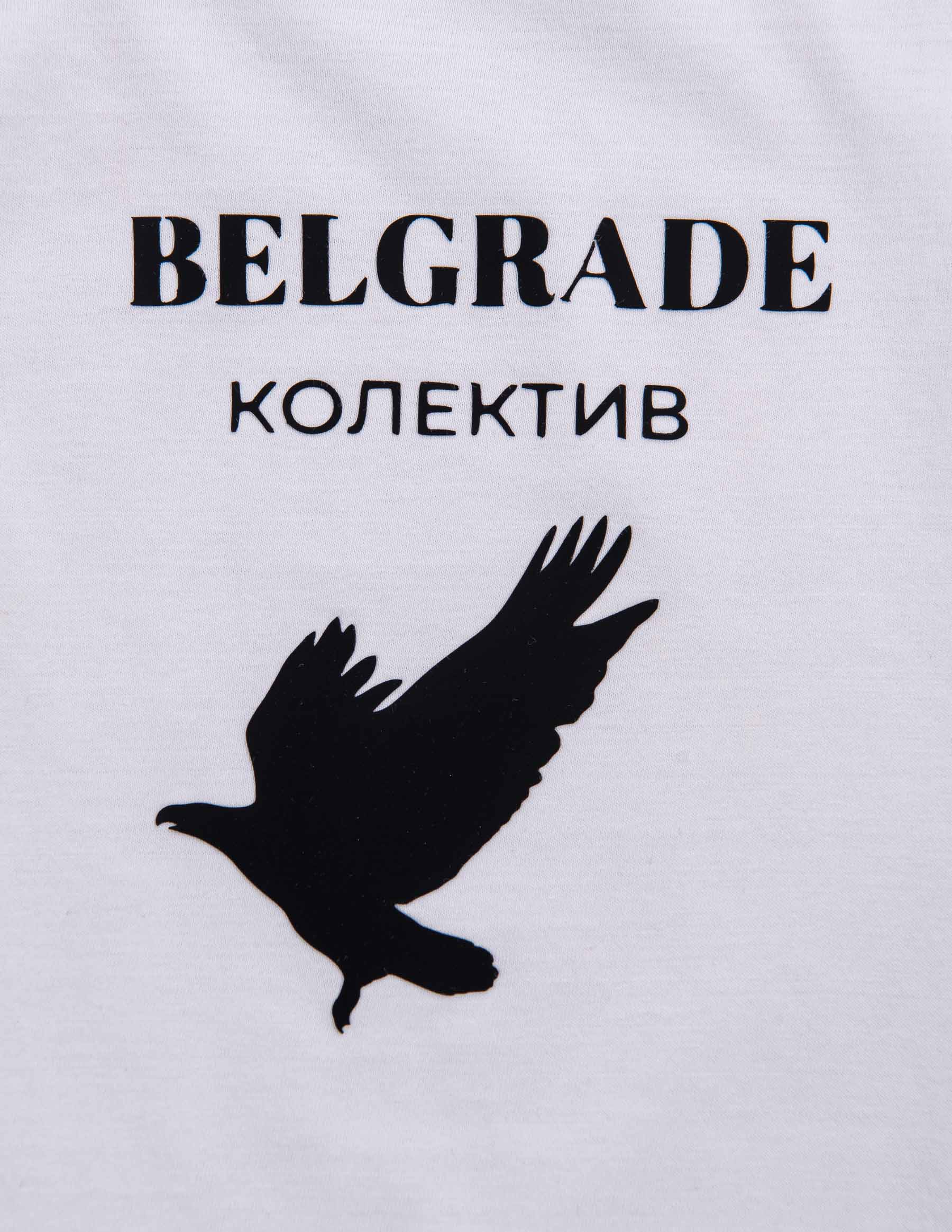 A statement piece from Belgrade Collective, inspired by The White City where East meets West. Featuring bold black bird silhouettes and falling feathers, this design represents freedom, resilience, and the unstoppable spirit of Belgrade. Finished with dual-language branding — BELGRADE / КОЛЕКТИВ — it merges heritage with modern street luxury.