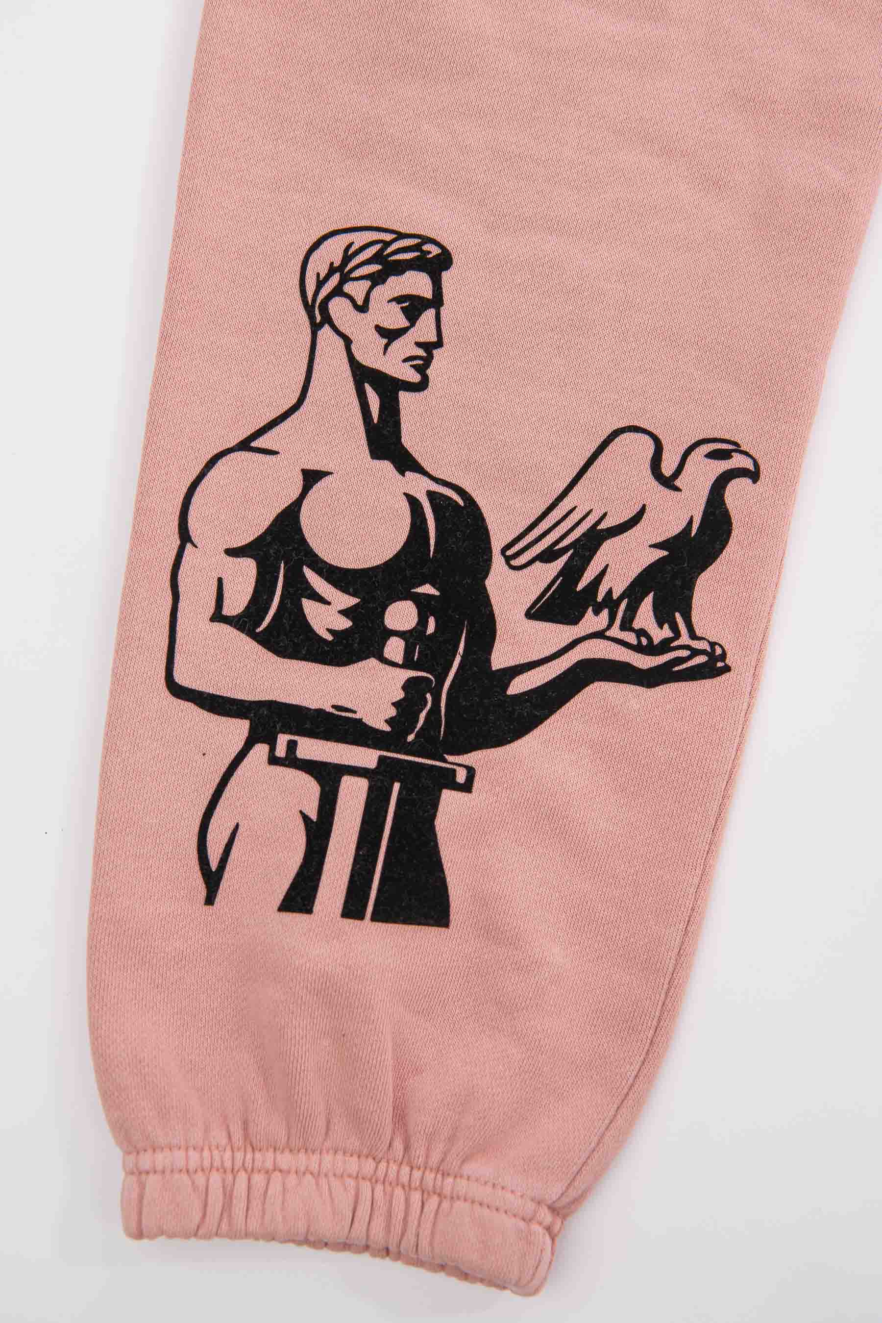 The LACHS (soft peach-pink) track pants are designed as the perfect counterpart to the POBEDNIK Hoodie, offering a complete unisex streetwear look.